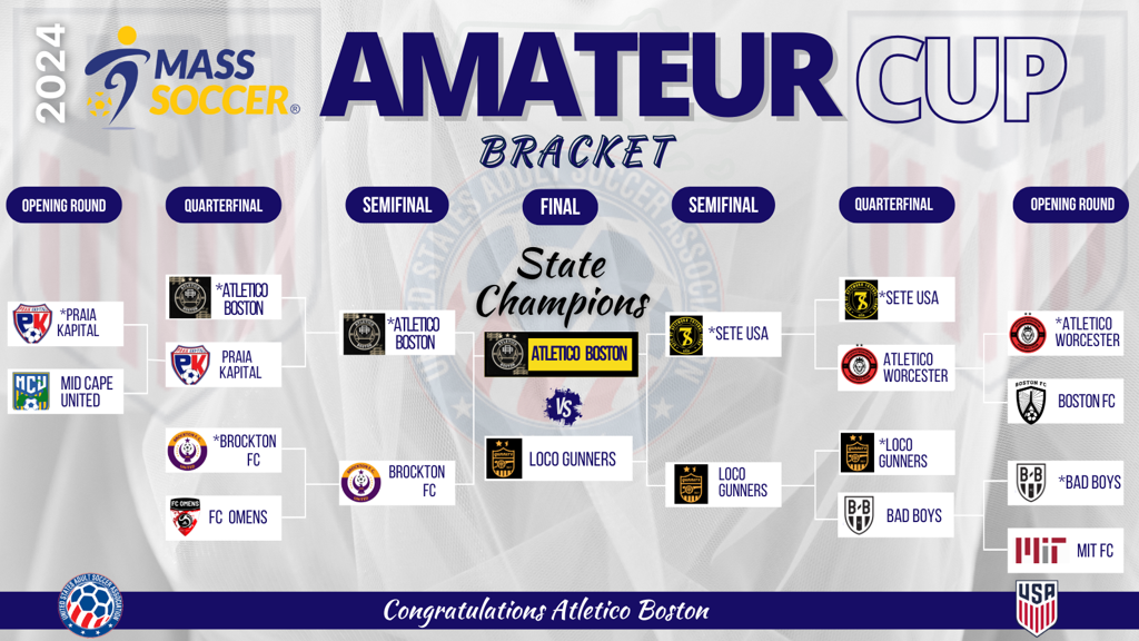 We also congratulate Atletico Boston on their third state title of the year. They become the first team ever in Massachusetts to win all three state championships in one year. Congratulations from all of us with Mass Soccer.