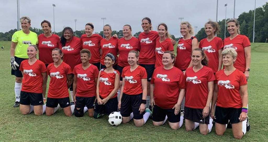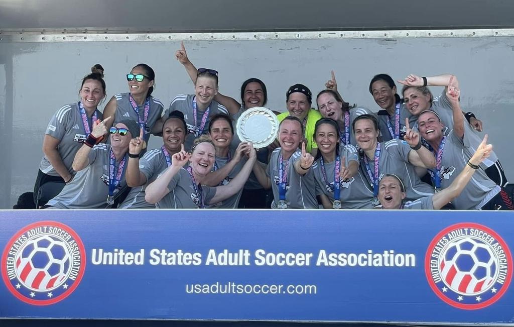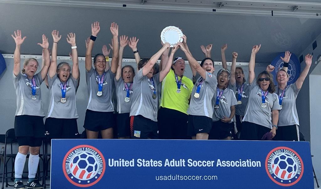 Mass Spirit 55s: Despite a 0-2 loss to Lone Star FC (TX) in their first-round robin game, the Spirit O55 women persevered and grew stronger and stronger with each match. They defeated Northern Virginia Majestics by a score of 1-0 in their next game, then defeated Lady Neptunes (MD) by a score of 3-0 to close out round robin play. In the semifinals, Spirit bested Maryland, then marched into the finals to avenge their first game's and last year's final's losses to Lonestar FC. Spirit played with grit and held on to a narrow 1-0 victory, taking home gold! Congratulations to national champions Mass Spirit 55's!