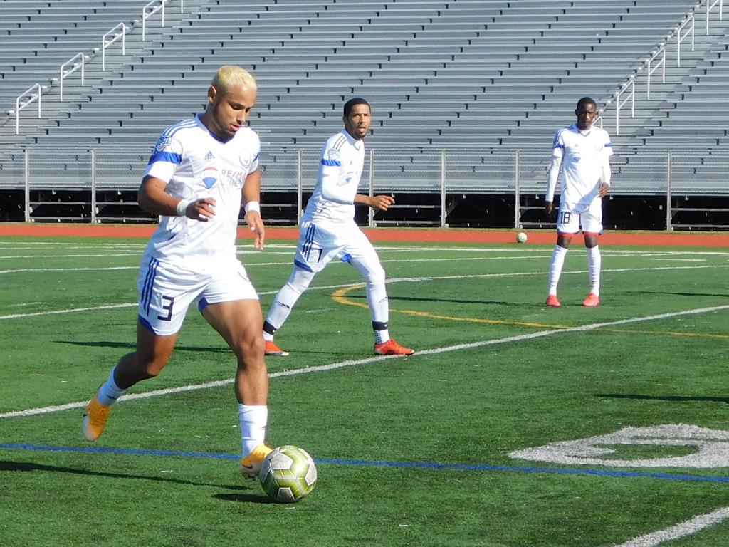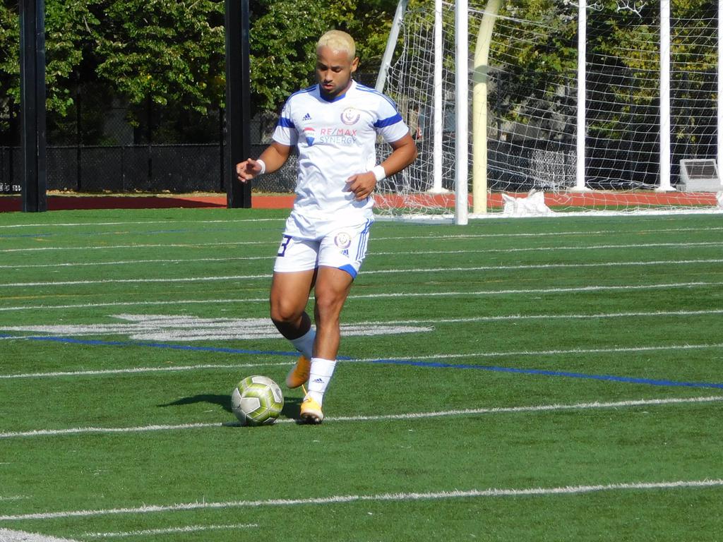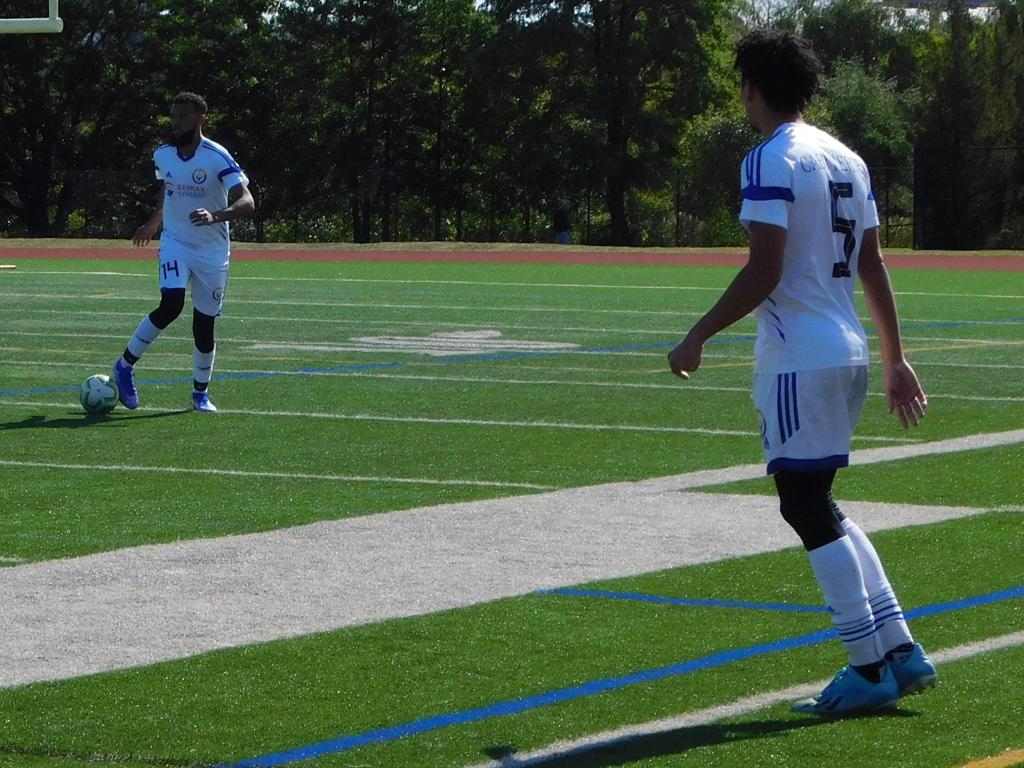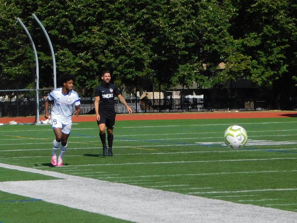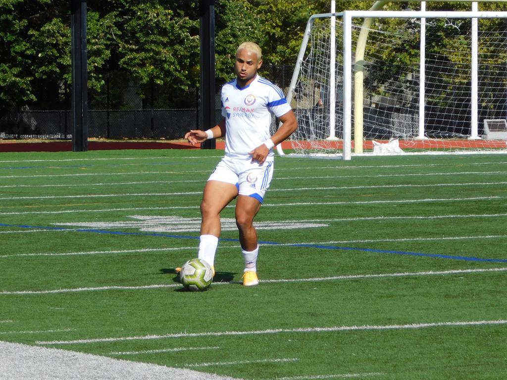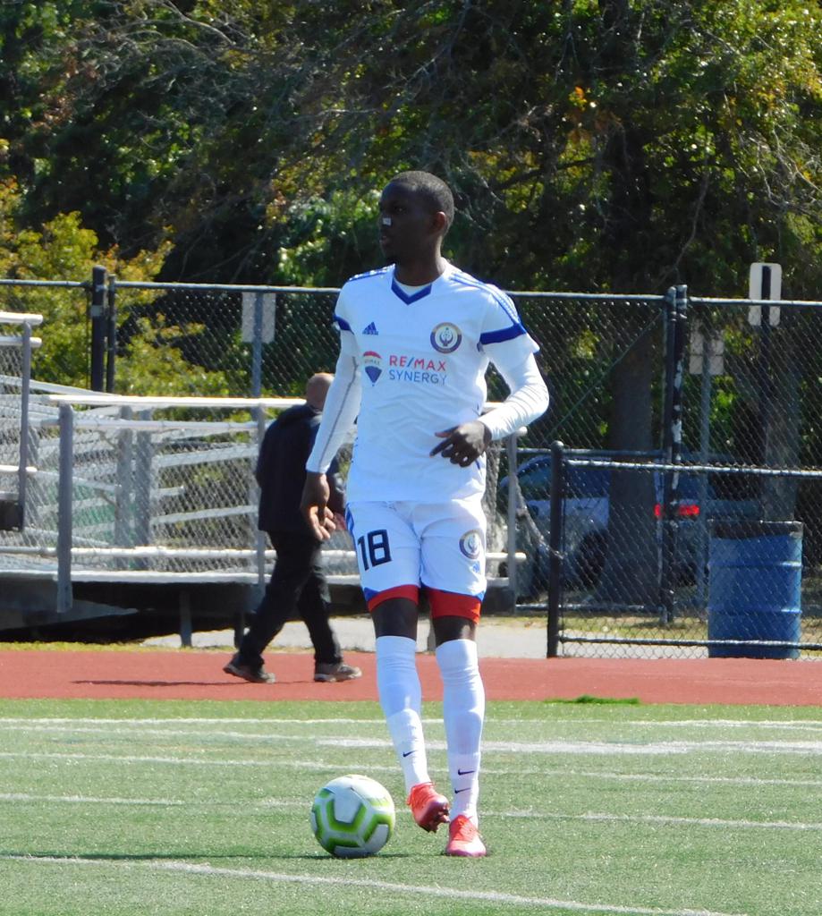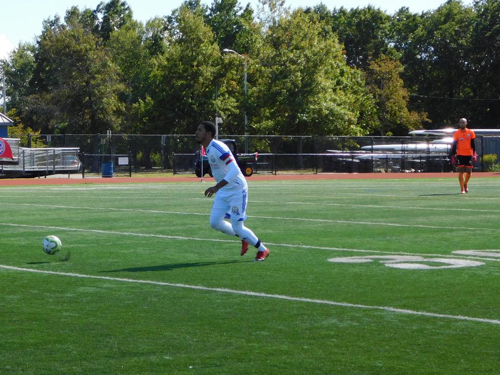 The first portion of the half went back and forth with both sides making valiant efforts at net and solid defense throughout. Twenty-six minutes into the match, Brockton was first to strike. The outside midfielder made a sprint down the left side of the field and slid a grounded cross to the middle. Ronaldinho put a pass with the inside of his left foot into the bottom left of the net, and Brockton FC was up 1-0.