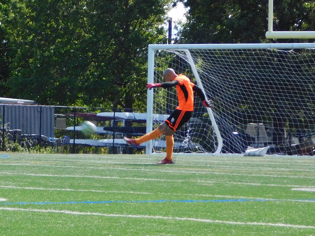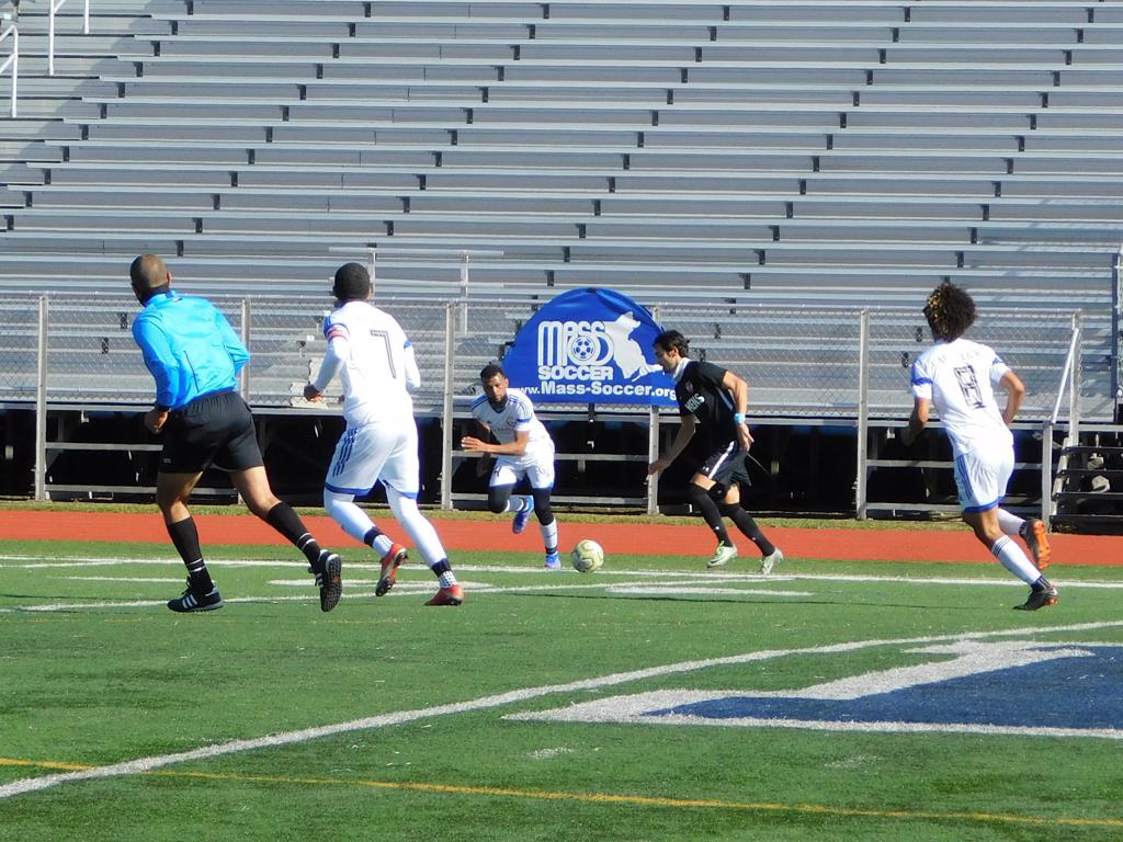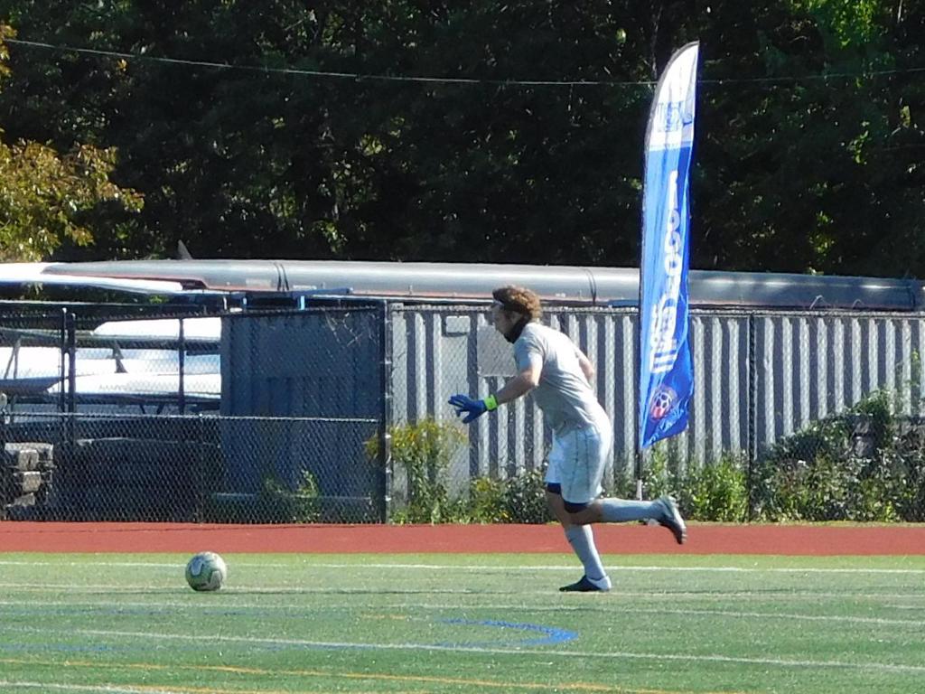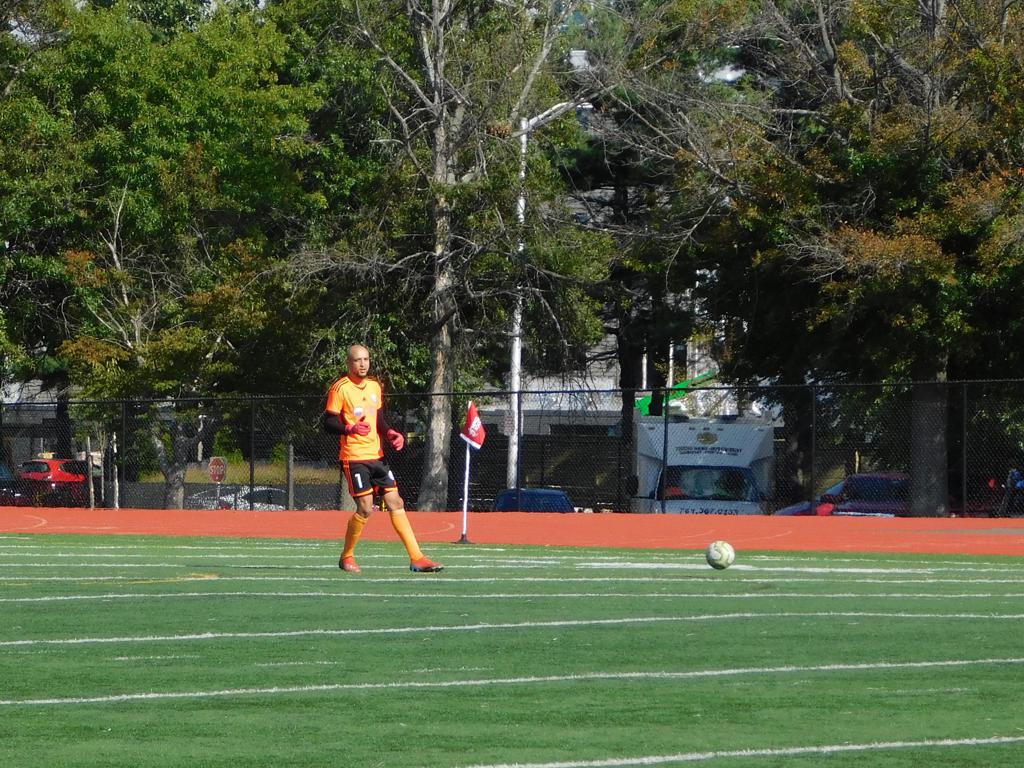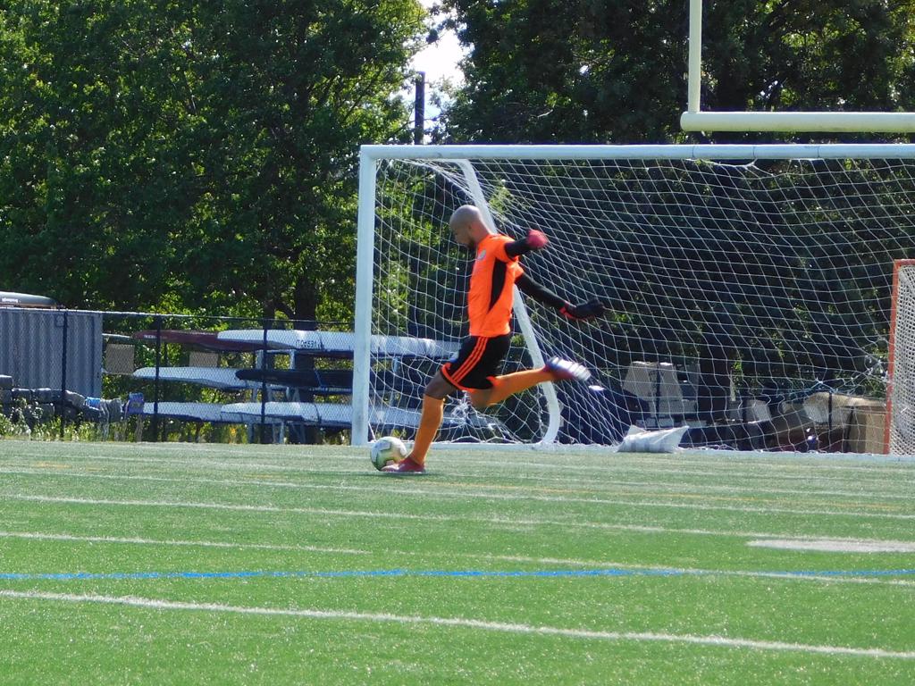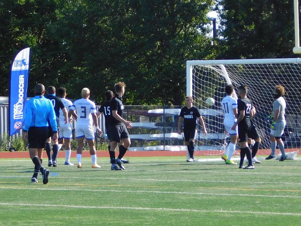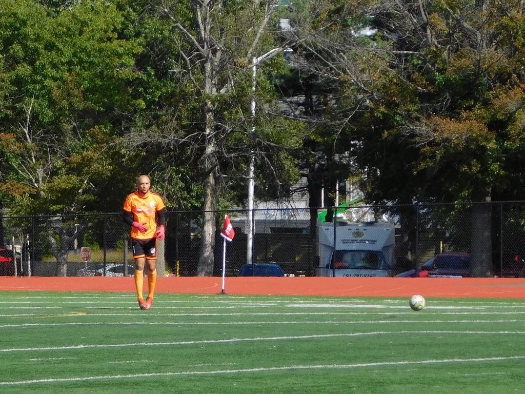 With only minutes in the game remaining, Brockton's #7 made a pass from the center of midfield to the outside left and a long ball into the GPS box followed. This ball was headed by Brockton's Edmilson (#11) into the upper left side of the GPS net.