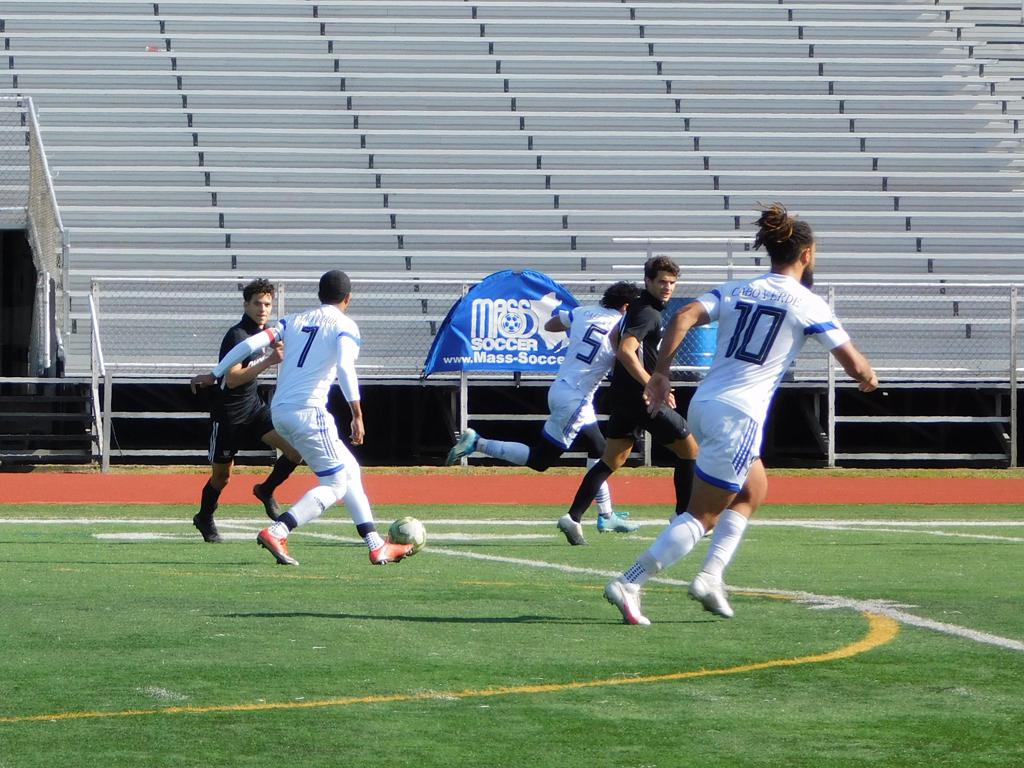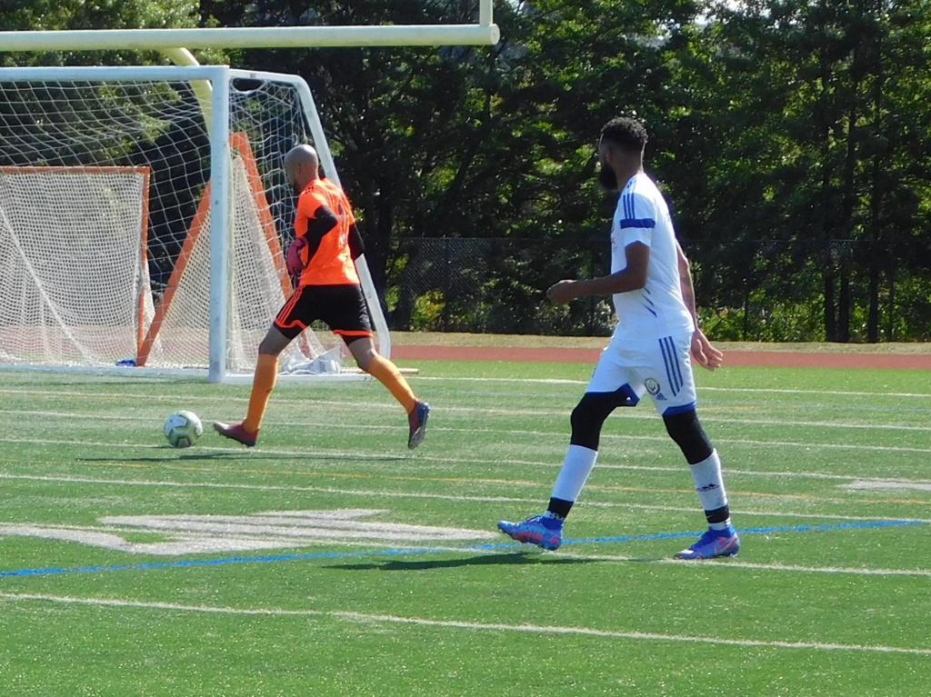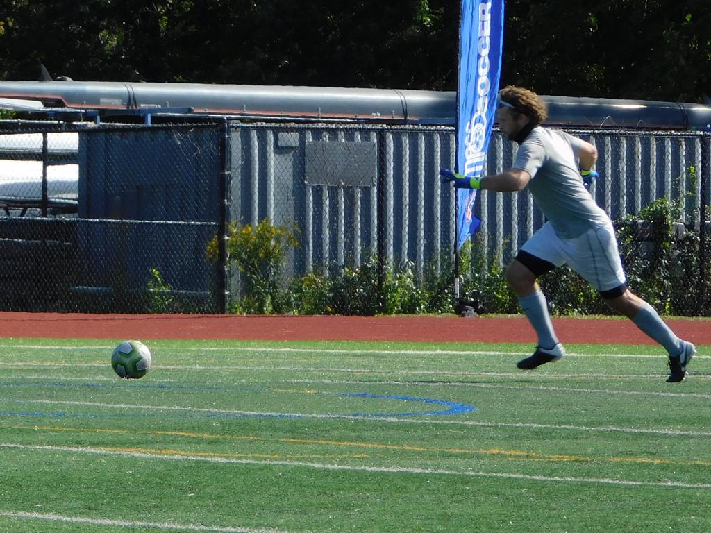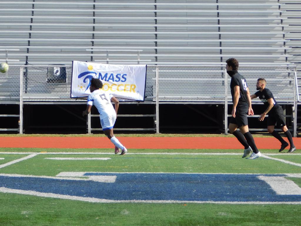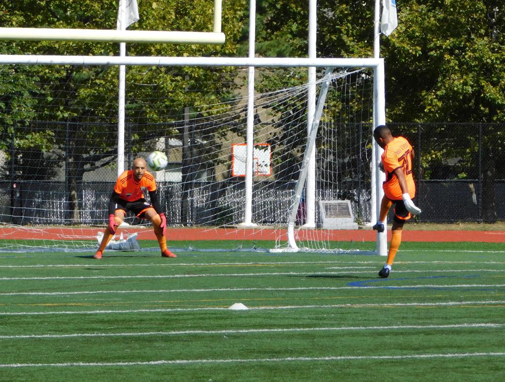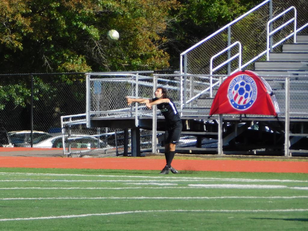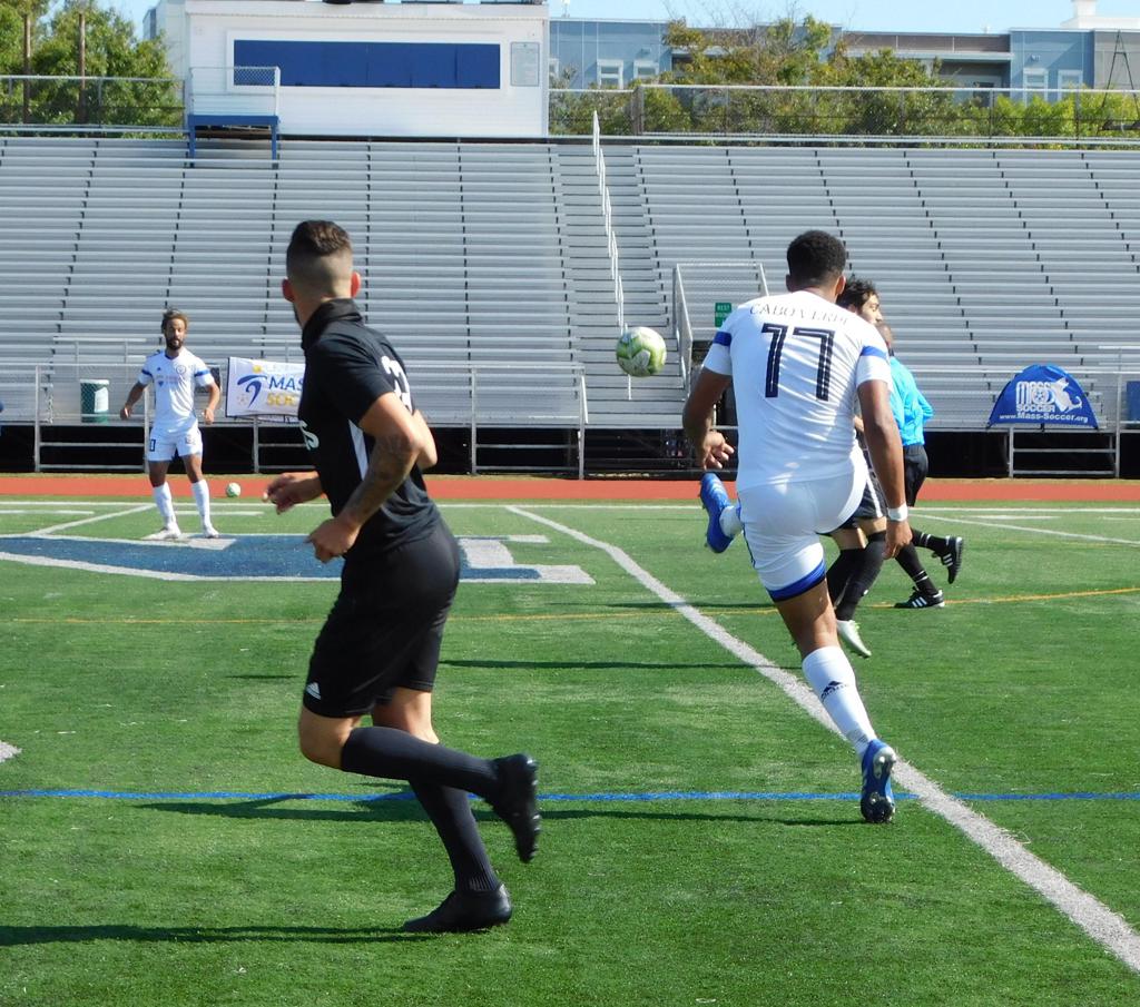 With only minutes in the game remaining, Brockton's #7 made a pass from the center of midfield to the outside left and a long ball into the GPS box followed. This ball was headed by Brockton's Edmilson (#11) into the upper left side of the GPS net.
