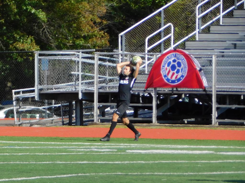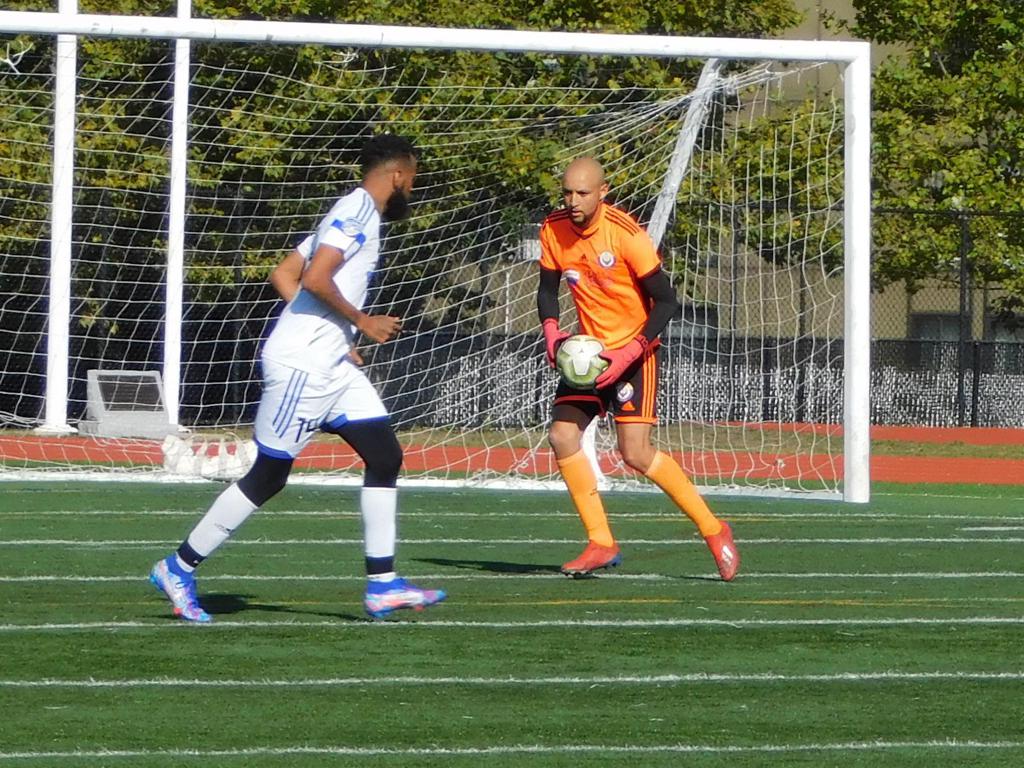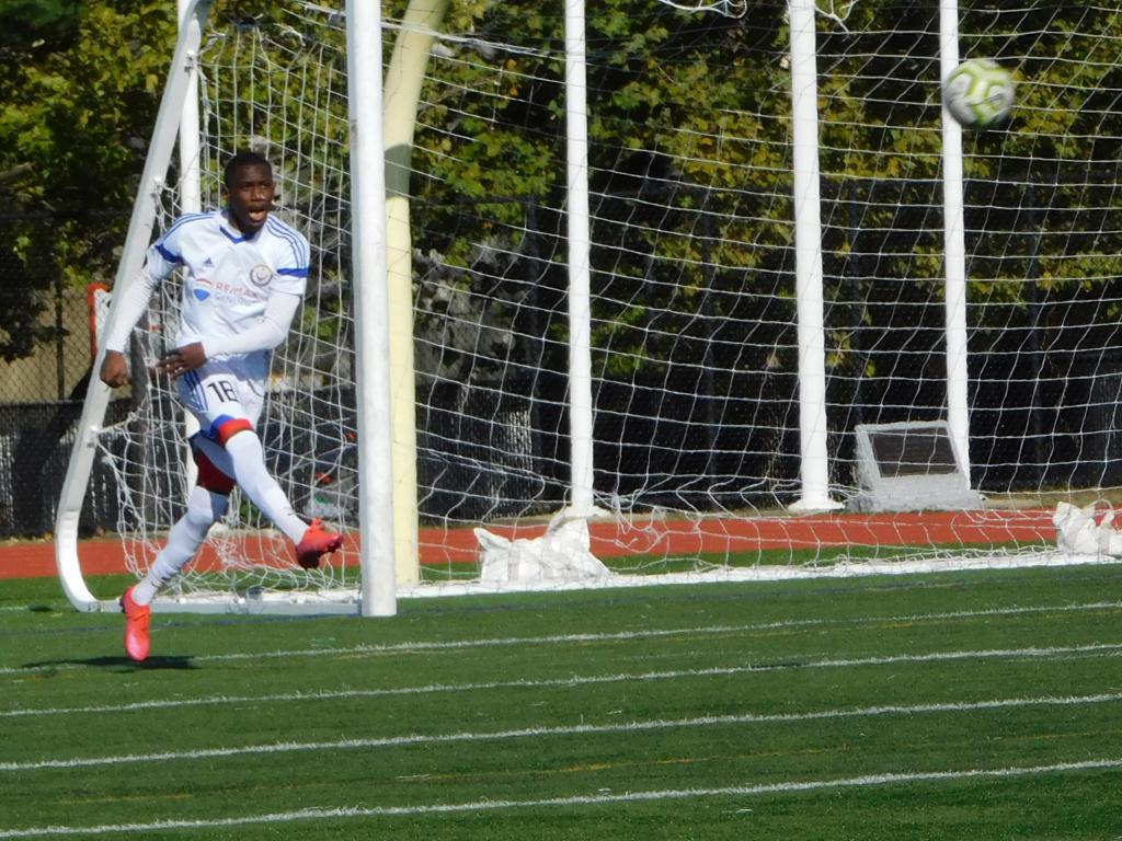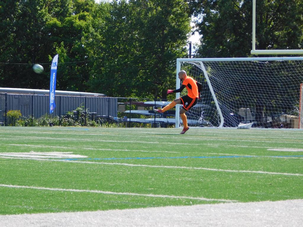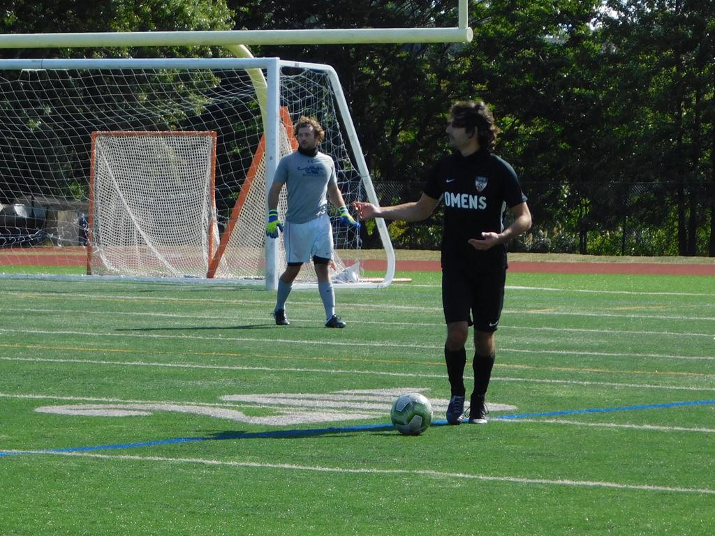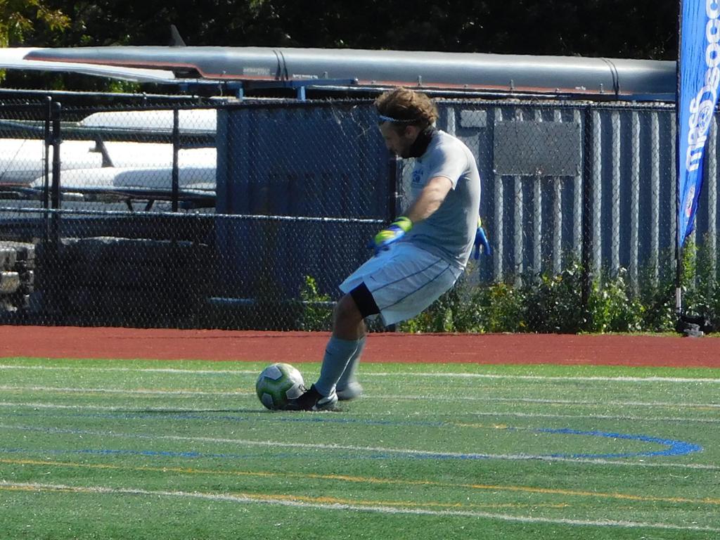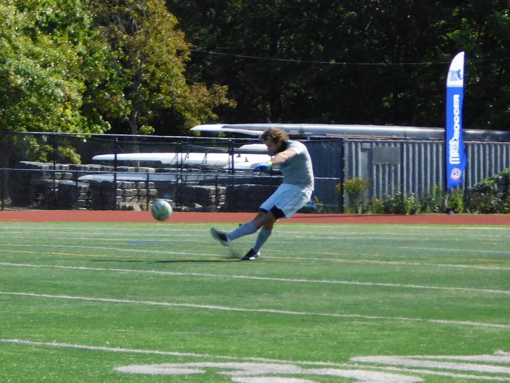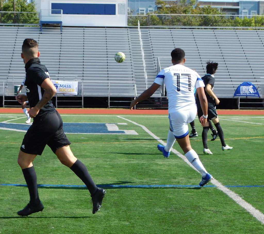 With only minutes in the game remaining, Brockton's #7 made a pass from the center of midfield to the outside left and a long ball into the GPS box followed. This ball was headed by Brockton's Edmilson (#11) into the upper left side of the GPS net.