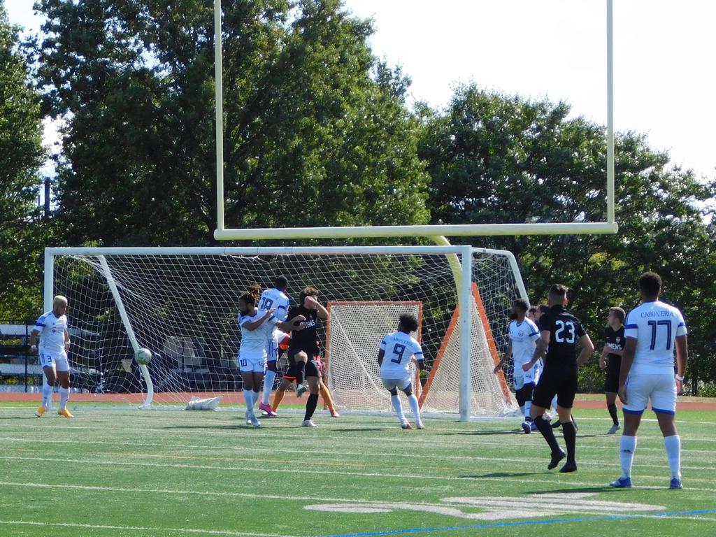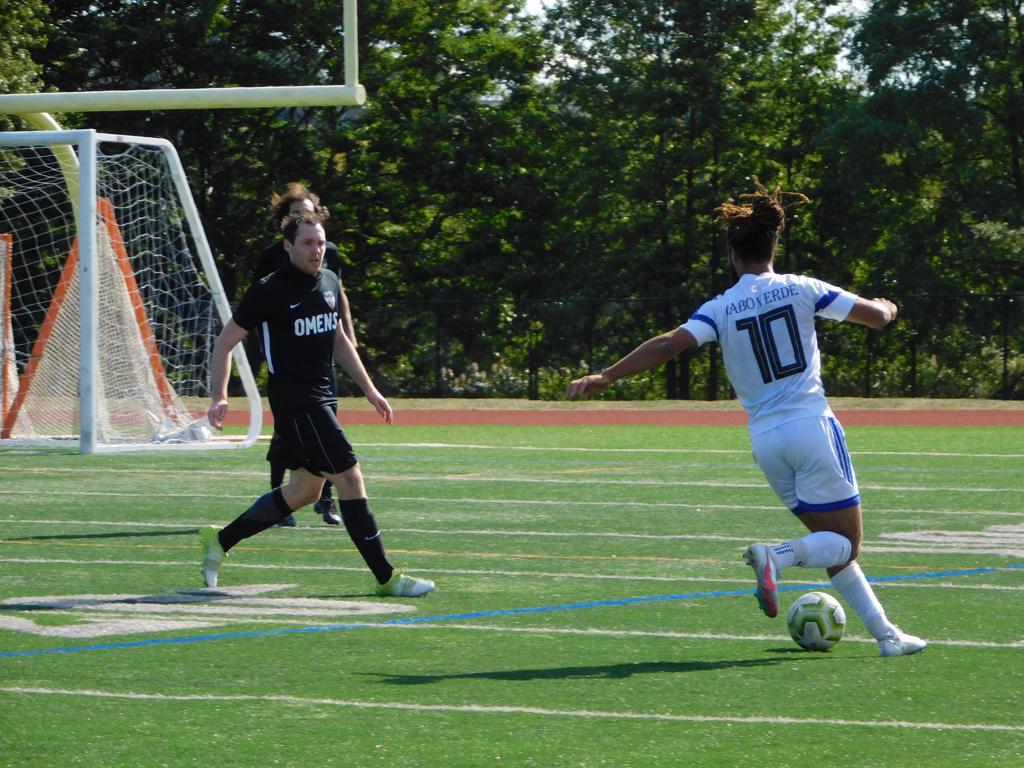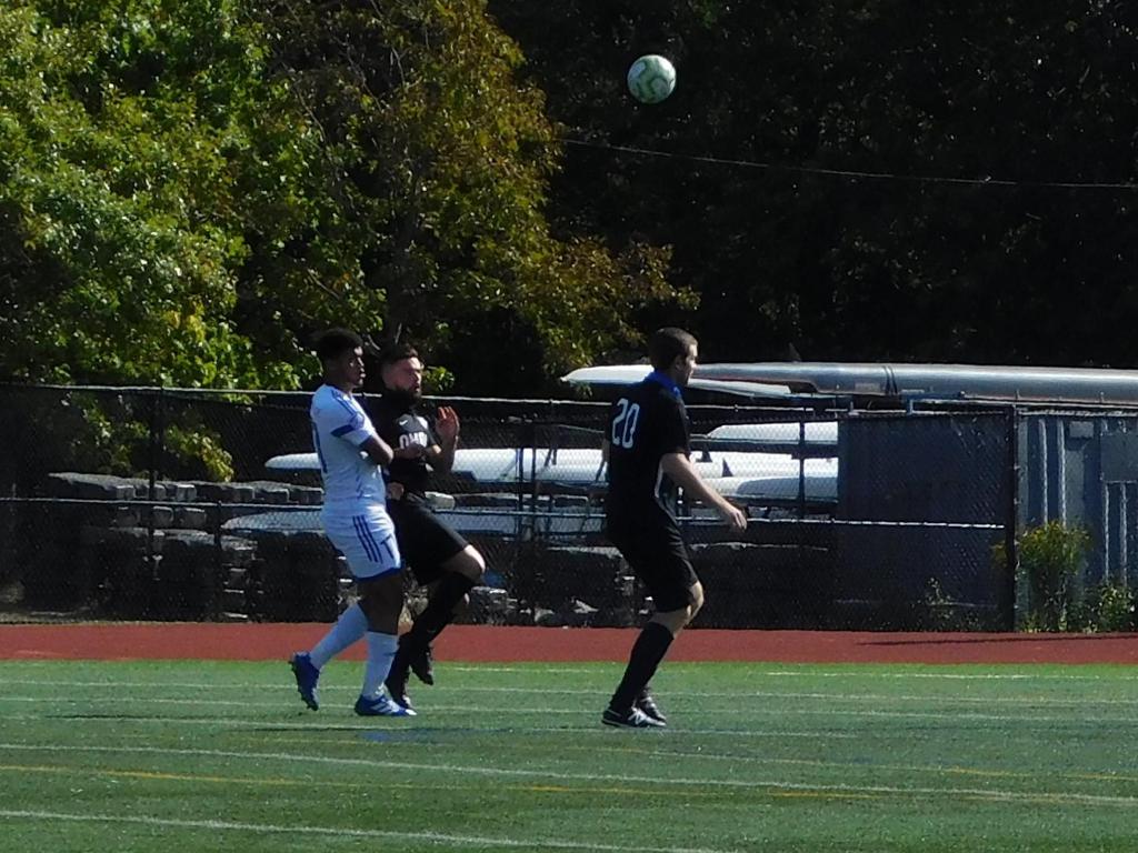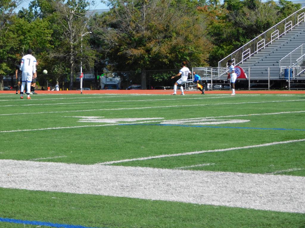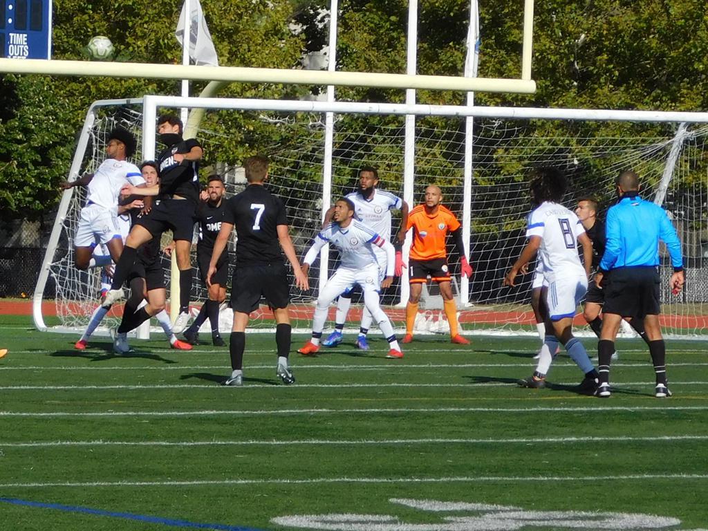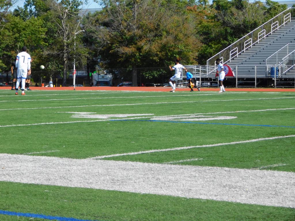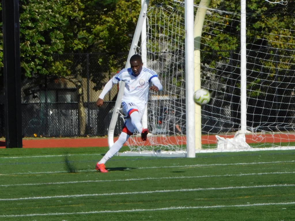 With only minutes in the game remaining, Brockton's #7 made a pass from the center of midfield to the outside left and a long ball into the GPS box followed. This ball was headed by Brockton's Edmilson (#11) into the upper left side of the GPS net.