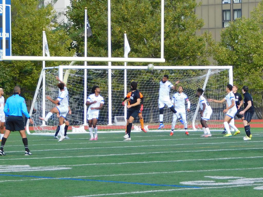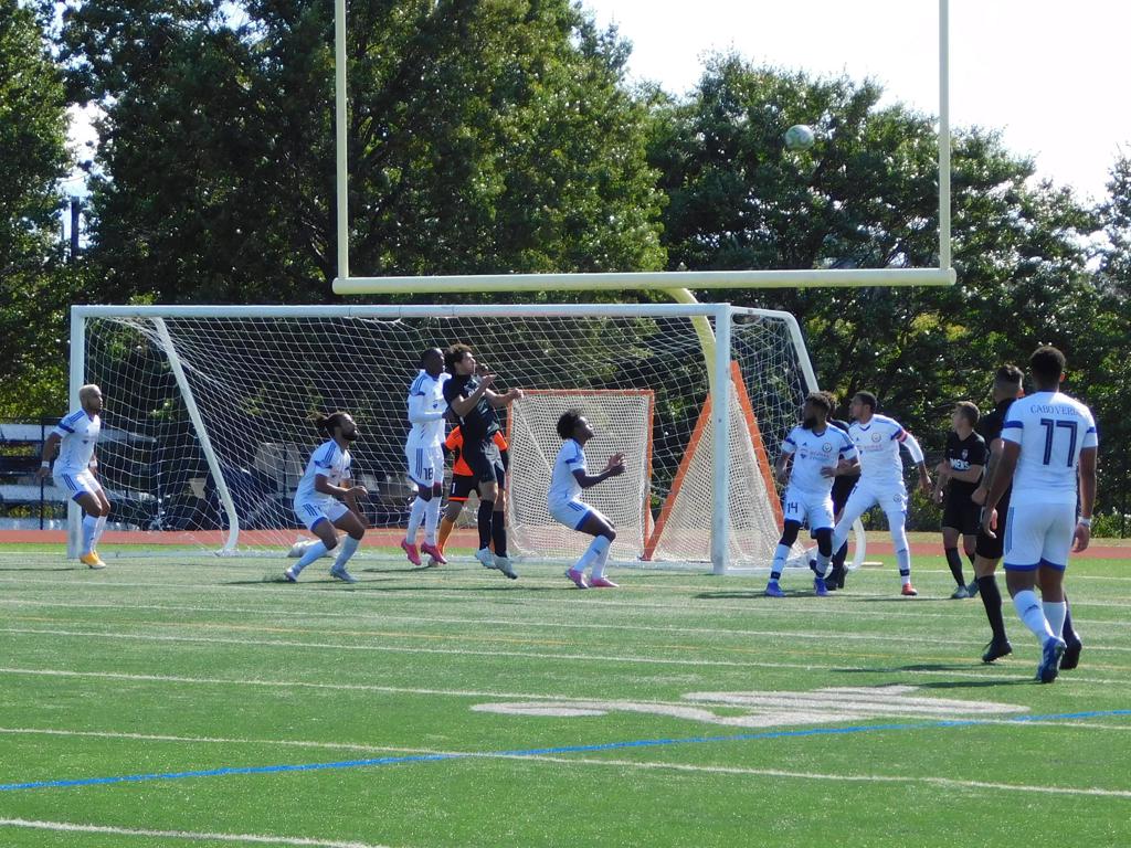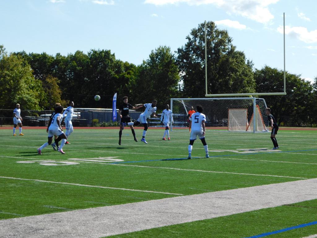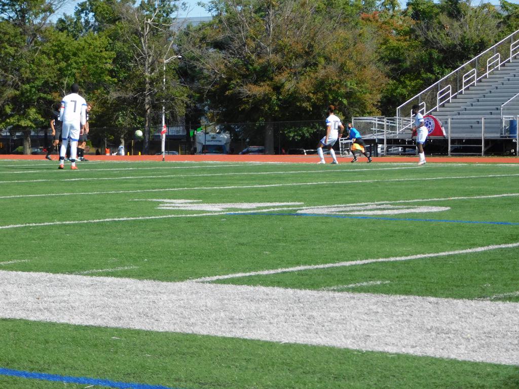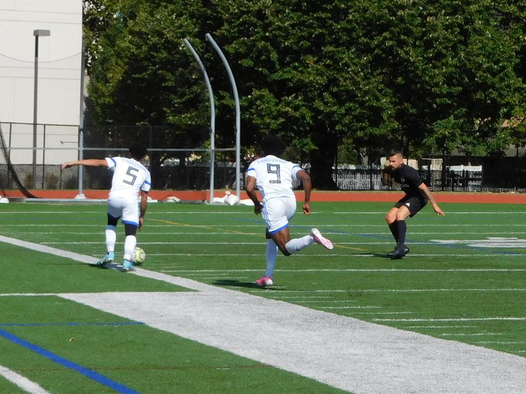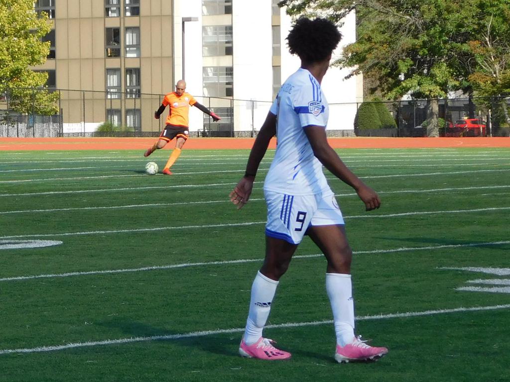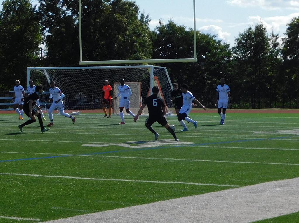 With only minutes in the game remaining, Brockton's #7 made a pass from the center of midfield to the outside left and a long ball into the GPS box followed. This ball was headed by Brockton's Edmilson (#11) into the upper left side of the GPS net.