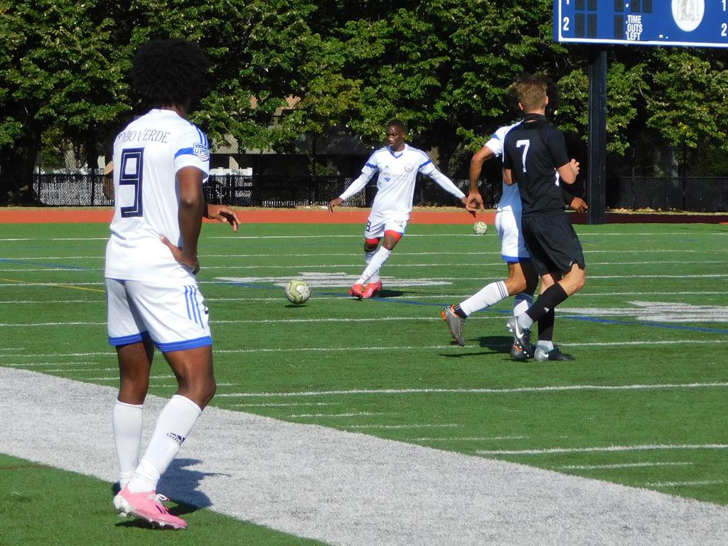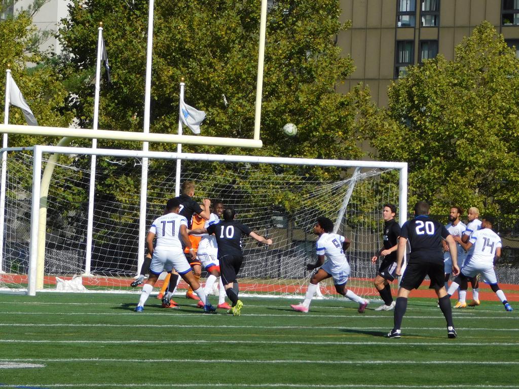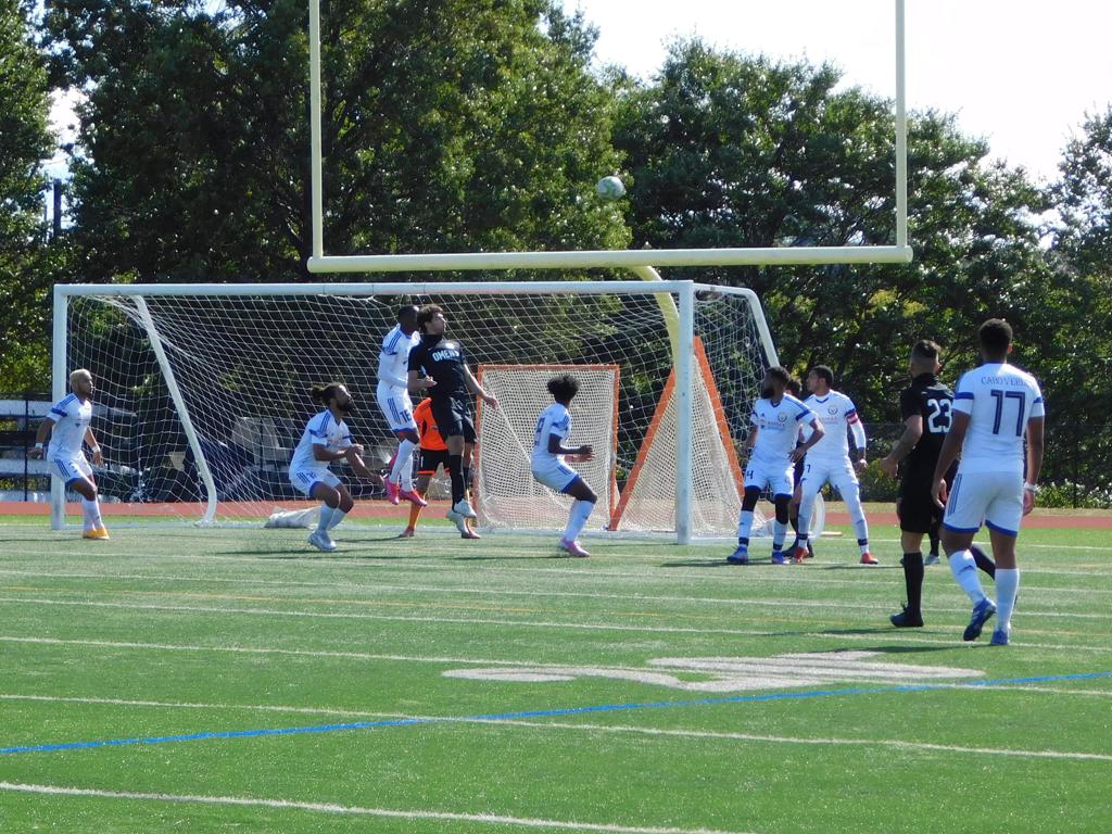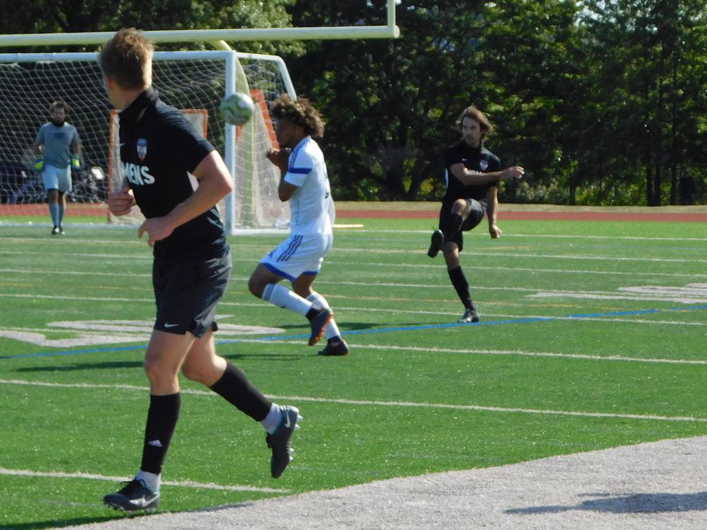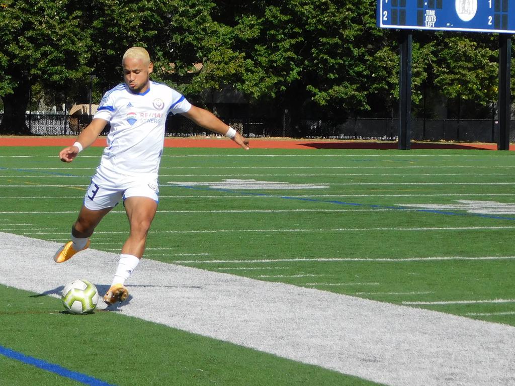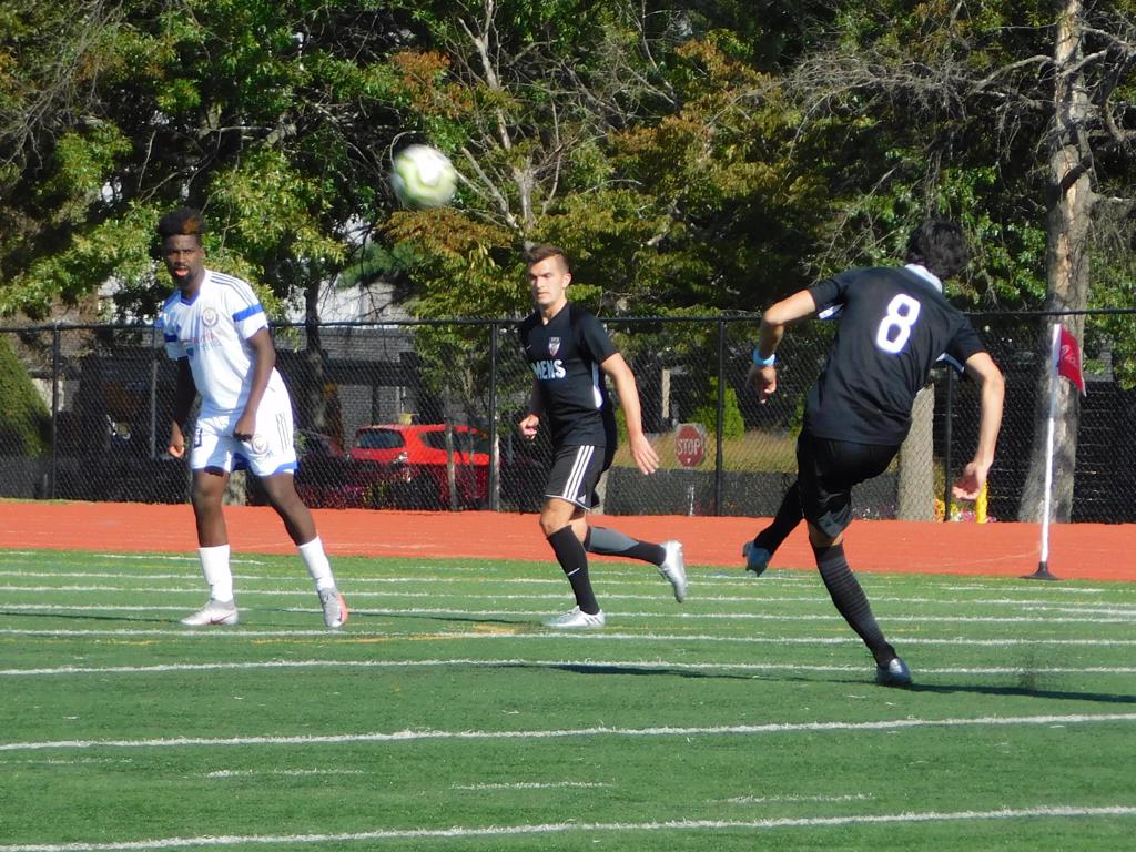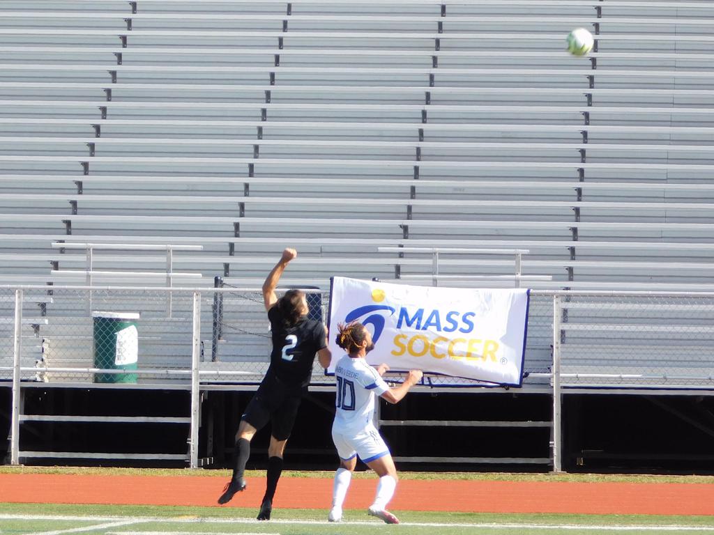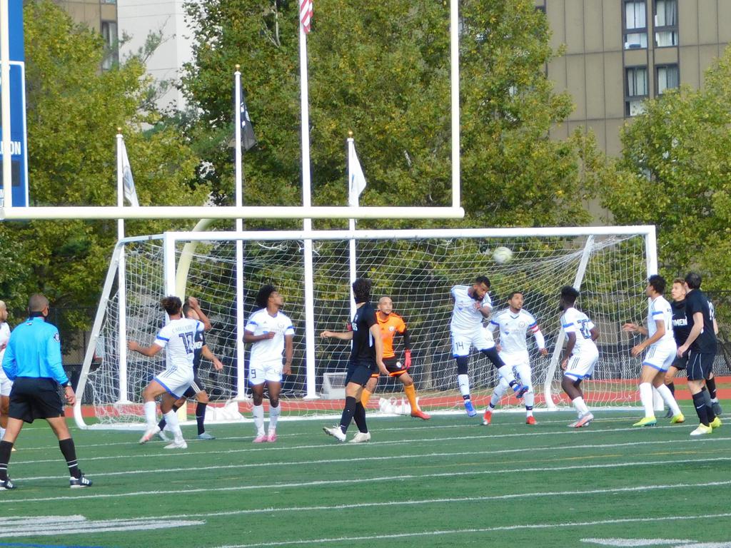 With only minutes in the game remaining, Brockton's #7 made a pass from the center of midfield to the outside left and a long ball into the GPS box followed. This ball was headed by Brockton's Edmilson (#11) into the upper left side of the GPS net.