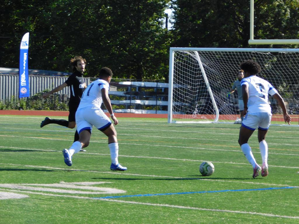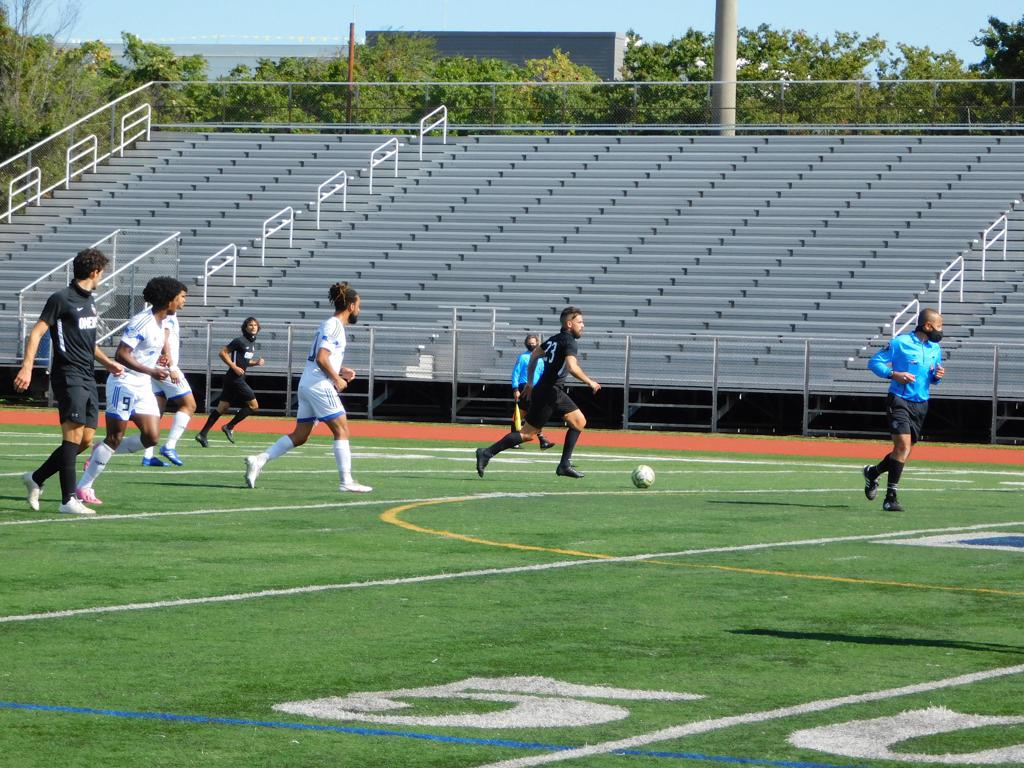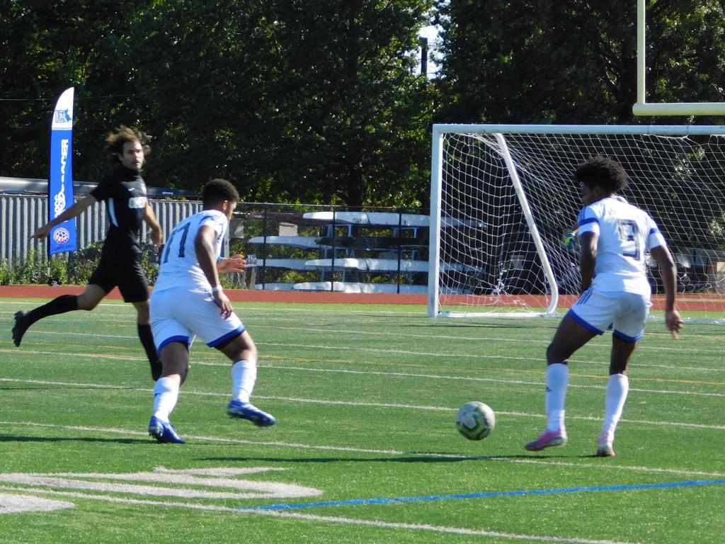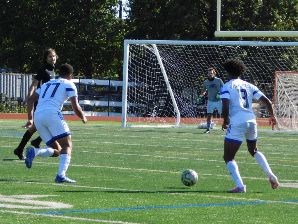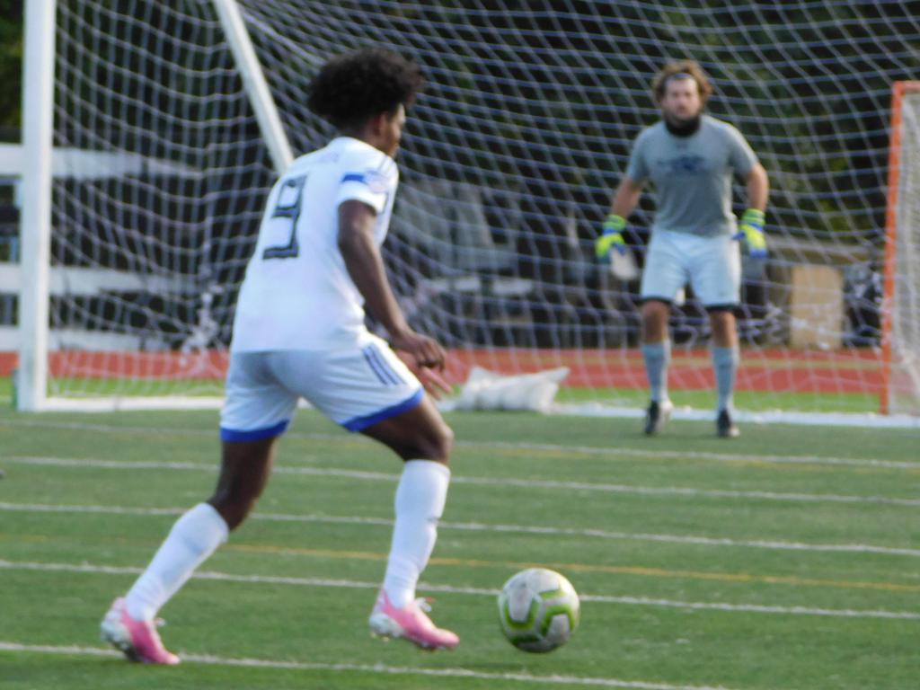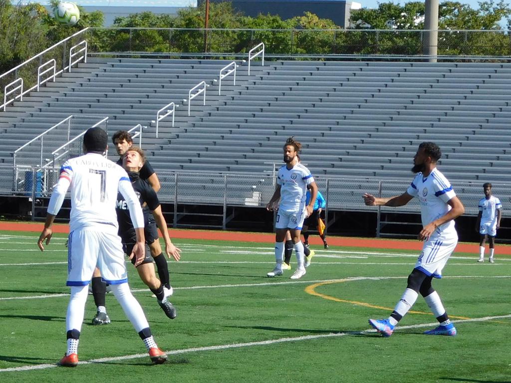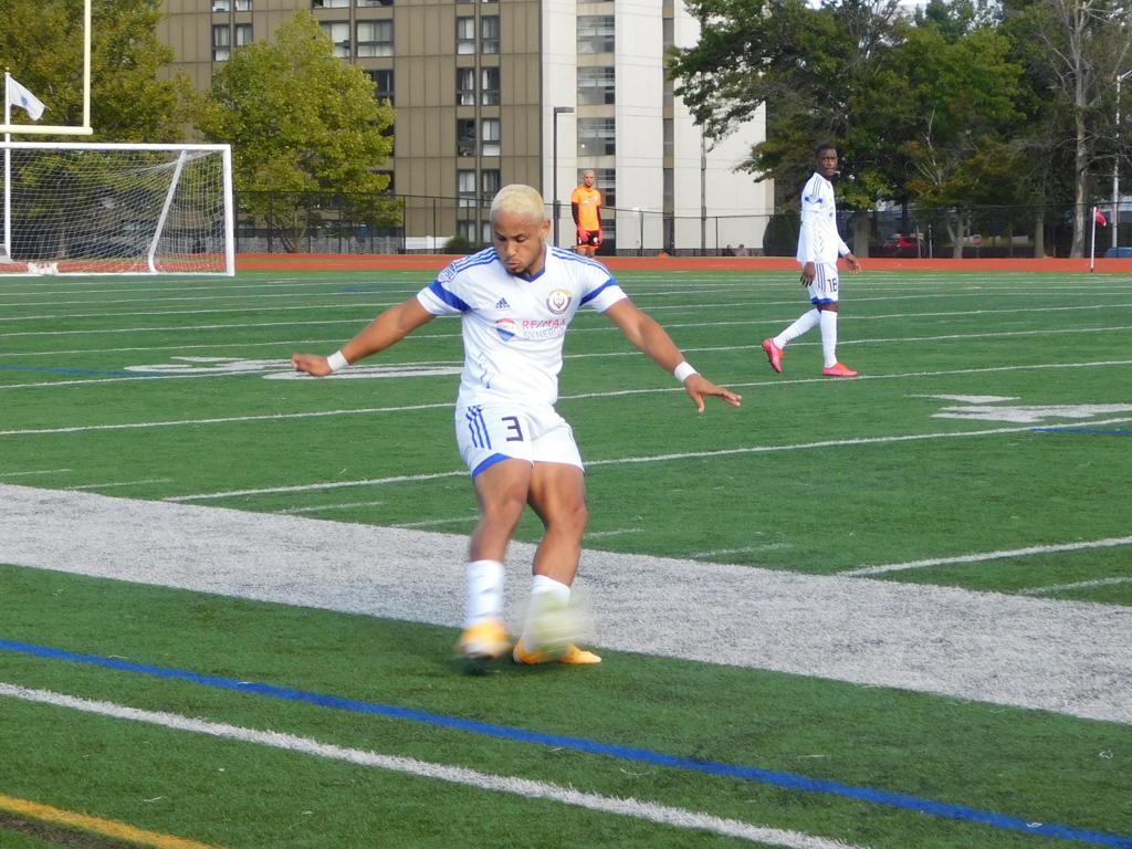 With only minutes in the game remaining, Brockton's #7 made a pass from the center of midfield to the outside left and a long ball into the GPS box followed. This ball was headed by Brockton's Edmilson (#11) into the upper left side of the GPS net.