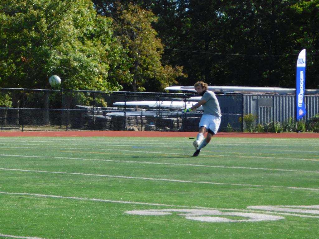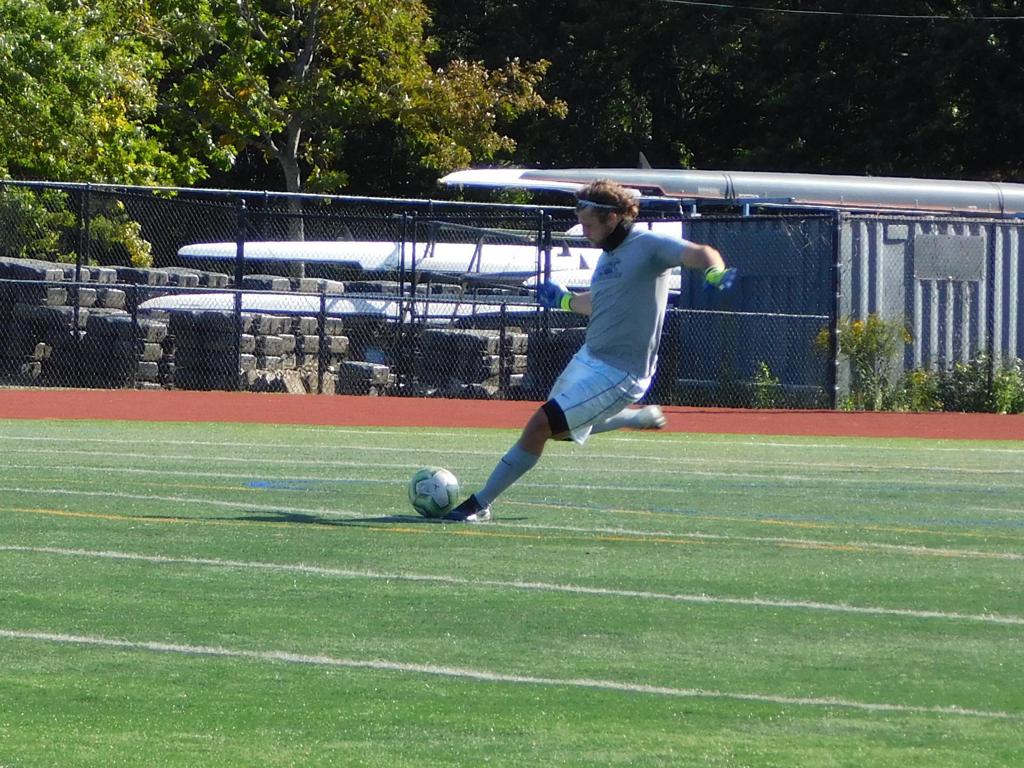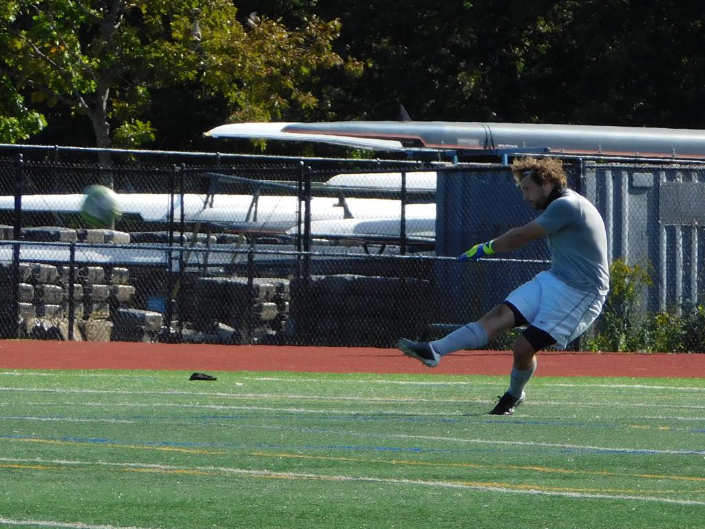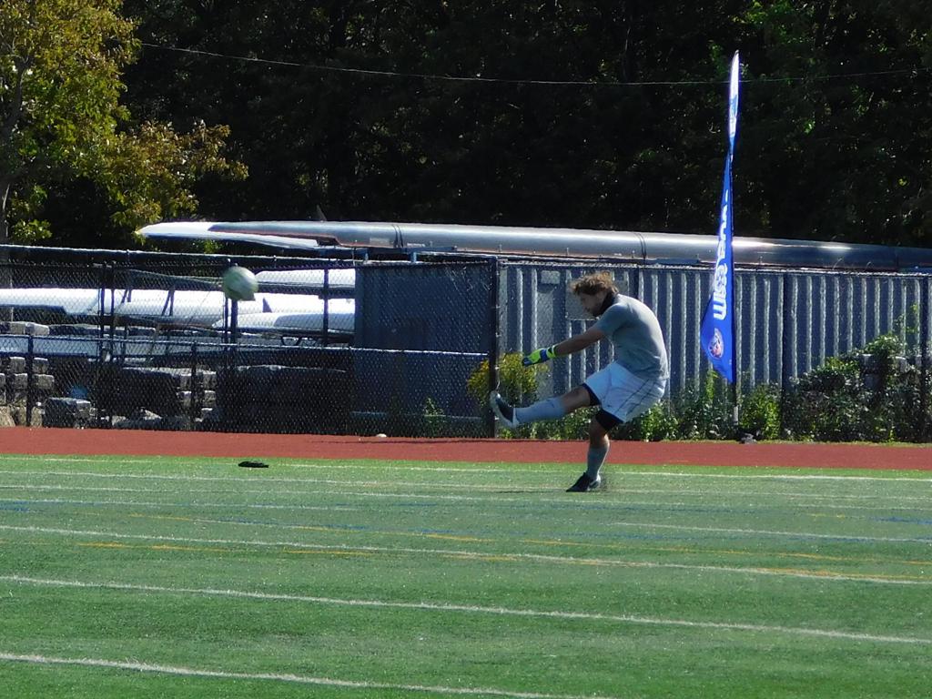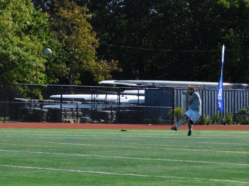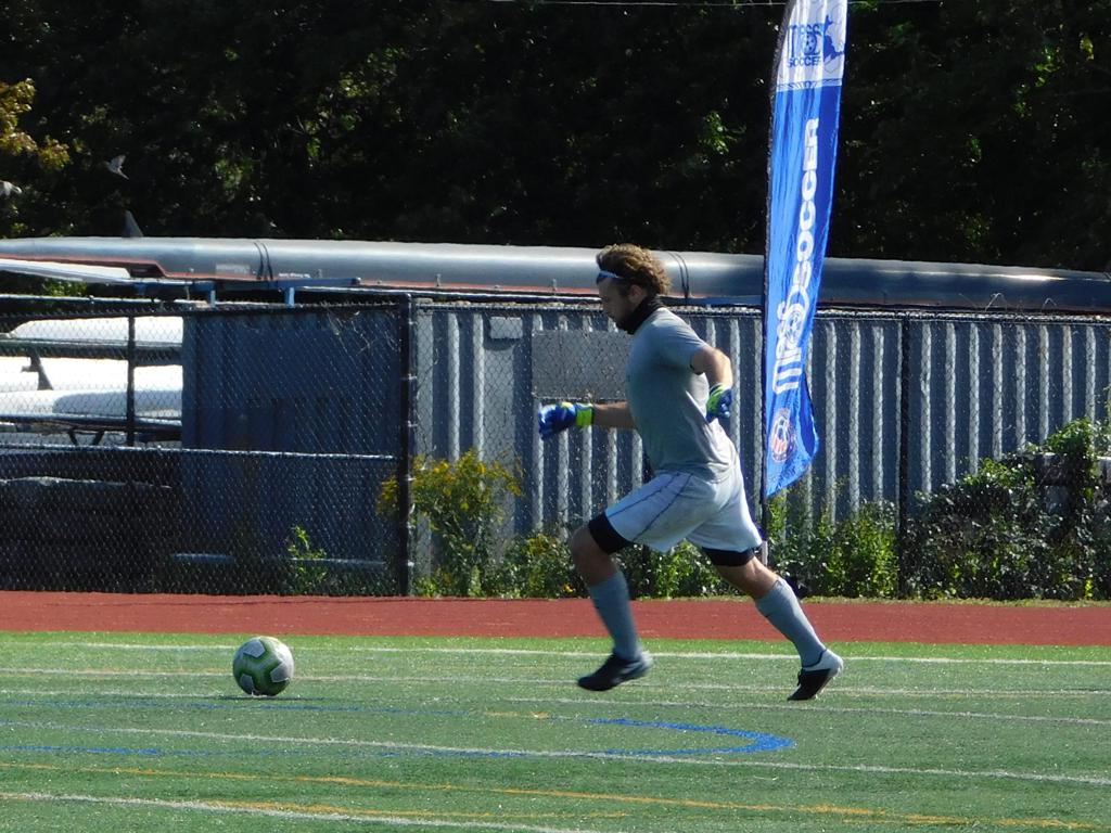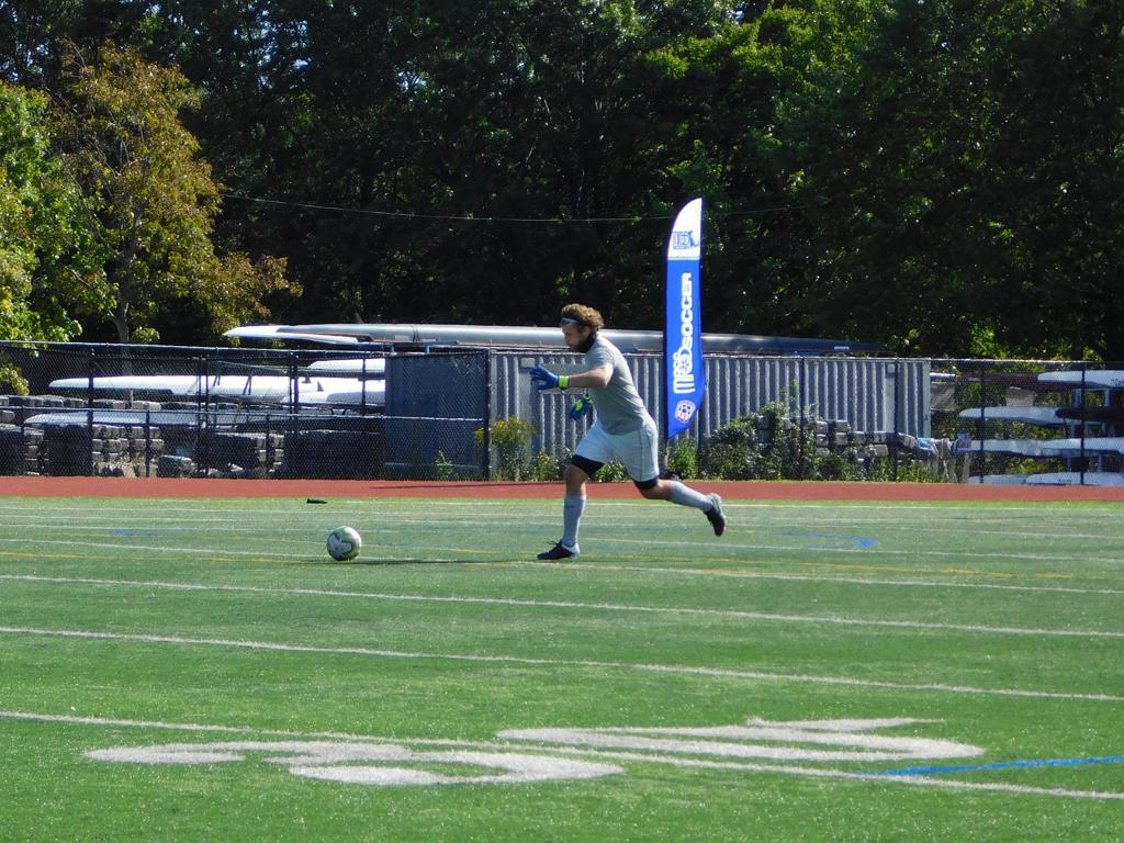Not long after, GPS made a brilliant attempt at goal. It began with a cross by Jake Edwards (#8) from the far right of the field and a one-time volley by a teammate in the left of the 18 yard box to the upper left 90 of the Brockton net. It took an amazing save by the Brockton keeper to keep GPS from scoring.
