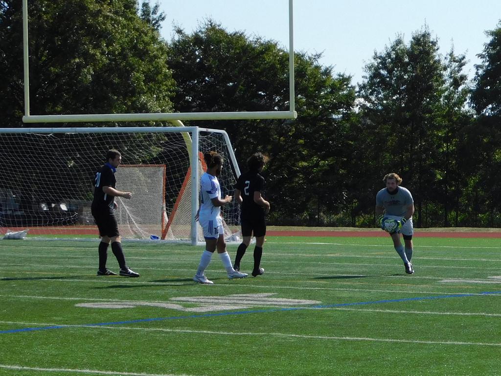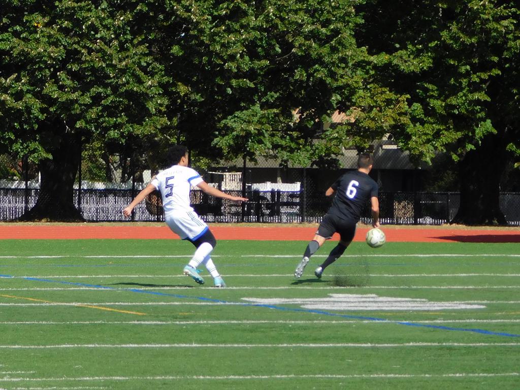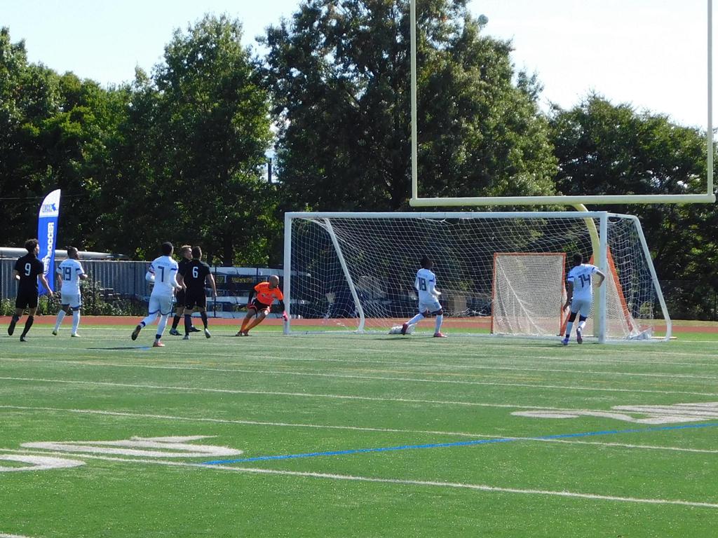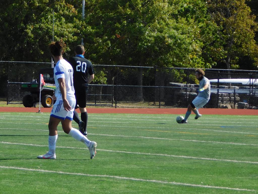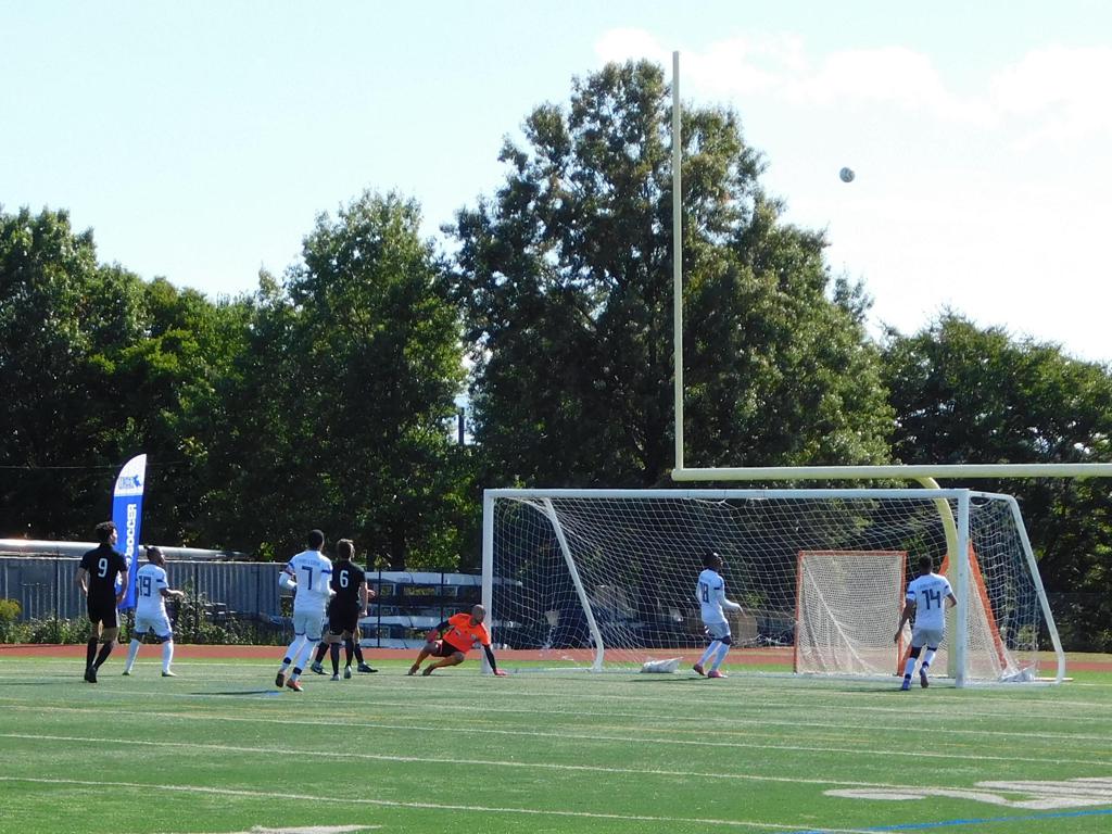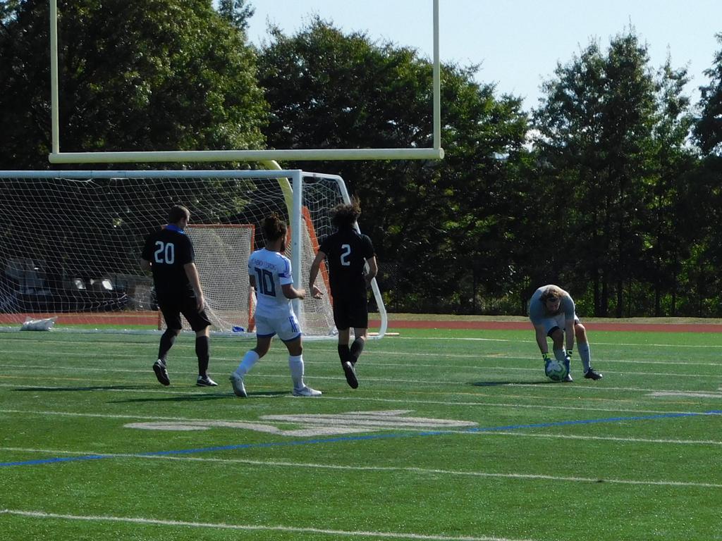 Not long after, GPS made a brilliant attempt at goal. It began with a cross by Jake Edwards (#8) from the far right of the field and a one-time volley by a teammate in the left of the 18 yard box to the upper left 90 of the Brockton net. It took an amazing save by the Brockton keeper to keep GPS from scoring.