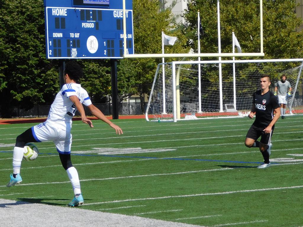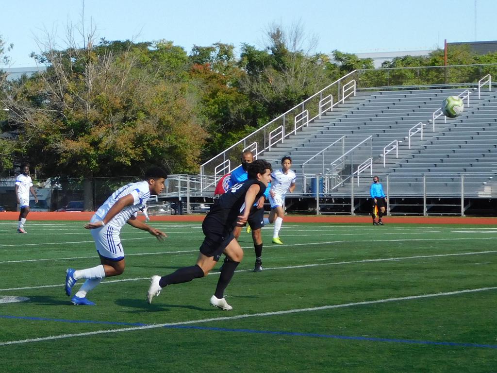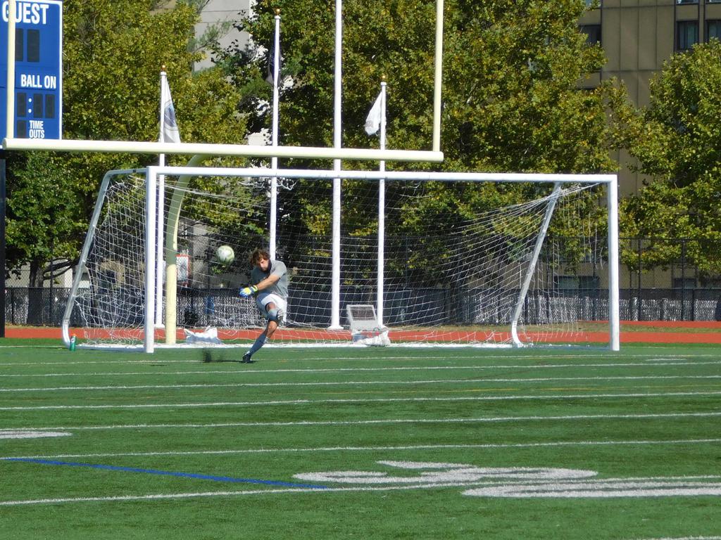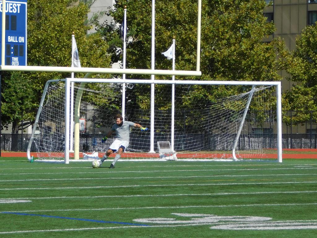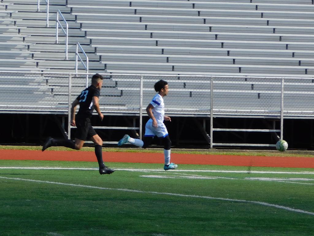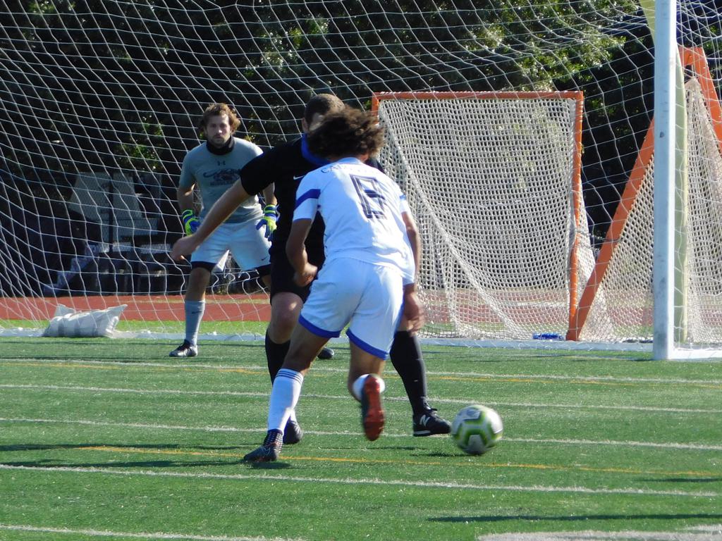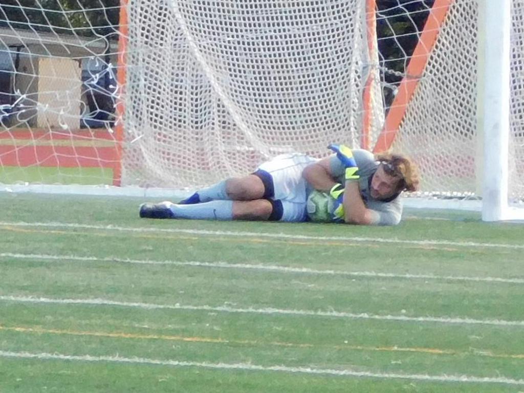 Not long after, GPS made a brilliant attempt at goal. It began with a cross by Jake Edwards (#8) from the far right of the field and a one-time volley by a teammate in the left of the 18 yard box to the upper left 90 of the Brockton net. It took an amazing save by the Brockton keeper to keep GPS from scoring.